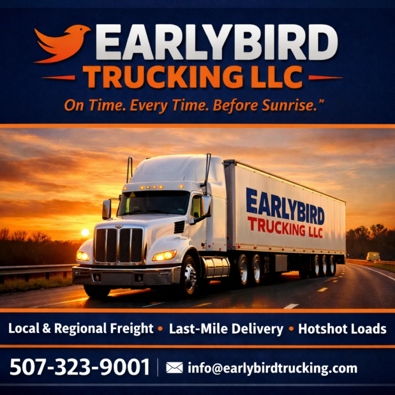 Welcome to Early Bird Trucking, your dependable partner for timely freight transportation across the Midwest. We focus on making sure your goods arrive exactly when you need them, every time. Join us as we set a new standard in food delivery logistics.